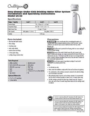 The Culligan EZ-Change undersink water filtration system reduces bad taste & odor, Chlorine taste & odor, sediment, lead, cysts such as cryptosporidium & giardia, turbidity, atrazine, lindane, particulate class 1.