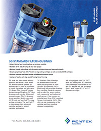 3G Standard Filter Housings are manufactured from durable polypropylene or clear Styrene-Acrylonitrile (SAN). Reinforced polypropylene housings have excellent chemical resistance and are ideal for residential, commercial, and industrial applications. Clear sumps are manufactured from FDA compliant Styrene-Acrylonitrile (SAN). They offer on-site examination of the cartridge and have excellent chemical compatibility.